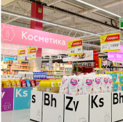 - Мультиформатное предложение, в рамках которого четыре основных формата представлены такими сегментами, как продукты питания, косметика и аптеки.